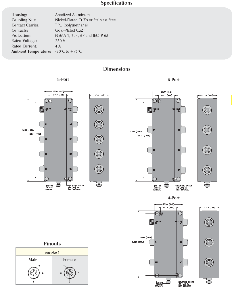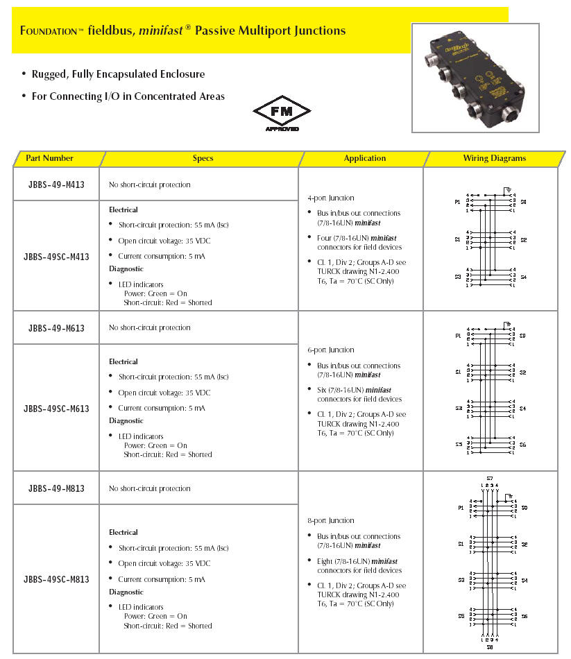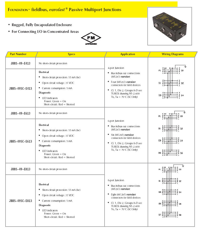 First table shows Junctions with 7/8" connections. The second (lower down) list shows junctions with M12 connections.