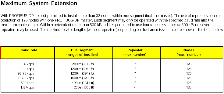 & Profibus Limits/Cycle Times